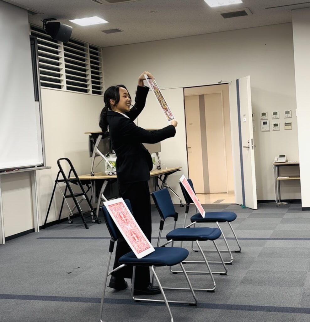 先日、東京電機大学のマジックサークルの皆さんが、都内の銀行で開催された懇親会にて初めての営業出演を行いました。私は外部講師として、事前の打ち合わせから当日の運営まで全体のサポートを担当させていただきました。